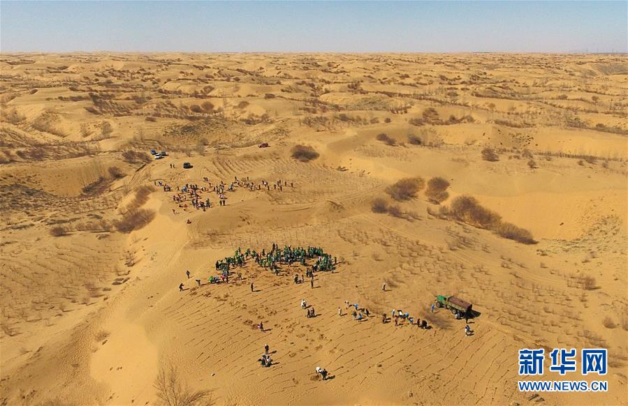 3月31日,中韓青年在內蒙古達拉特旗庫布其沙漠中植樹(無人機拍攝)。 當日,200余名中韓兩國青年志愿者來到內蒙古自治區(qū)達拉特旗庫布其沙漠種樹。2006年起,中國國際青年交流中心與韓國韓中文化青少年協(xié)會組織兩國青年志愿者在庫布其沙漠植樹,參與防沙固沙項目。截至目前已植樹850多萬株,造林3萬多畝。 新華社記者 劉磊 攝