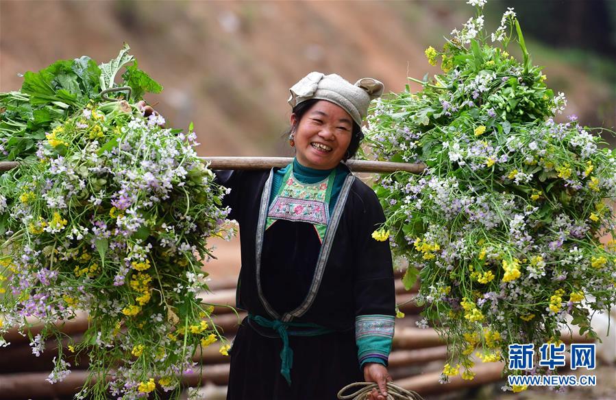 在黔桂烏英苗寨,村民勞作歸來(3月26日攝)。