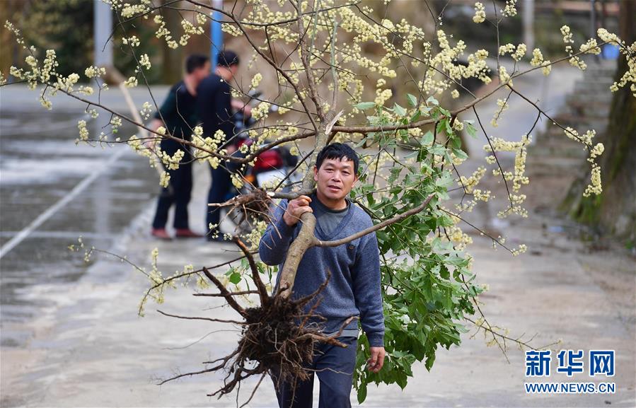 在黔桂烏英苗寨,村民勞作歸來(lái)(3月19日攝)。