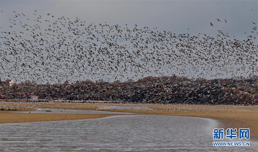 4月4日,一群候鳥在秦皇島市沿海濕地飛翔、休憩。近日,大批候鳥飛抵河北省秦皇島市沿海濕地,出現(xiàn)“萬(wàn)鳥臨?!逼嬗^。秦皇島沿海濕地鳥類食物豐富,每年春、秋兩季,大批候鳥遷徙經(jīng)過(guò)這里。新華社記者 楊世堯 攝