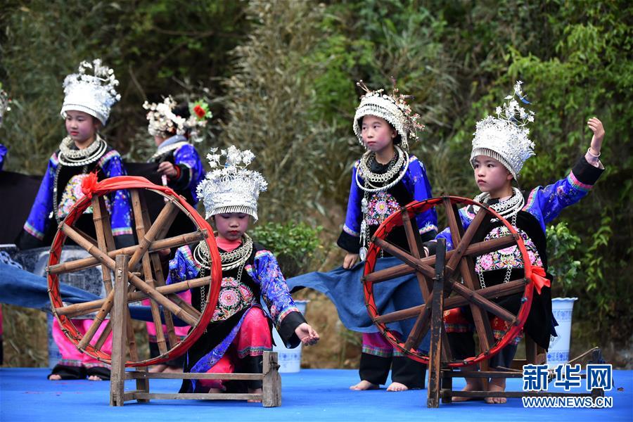 幾名苗族女孩在參加非遺手工藝展演活動(4月6日攝)。4月6日至7日,在貴州省黔東南苗族侗族自治州劍河縣觀么鎮(zhèn)新民村和新合村,來自劍河縣和三穗縣的苗族同胞歡聚一堂,通過民族歌舞展演、非遺手工藝展示、千戶祭“巫耶”、跳蘆笙舞等形式,與來賓一起歡慶2019年高雍苗族“三月三”民俗文化節(jié)。 新華社記者 楊文斌 攝