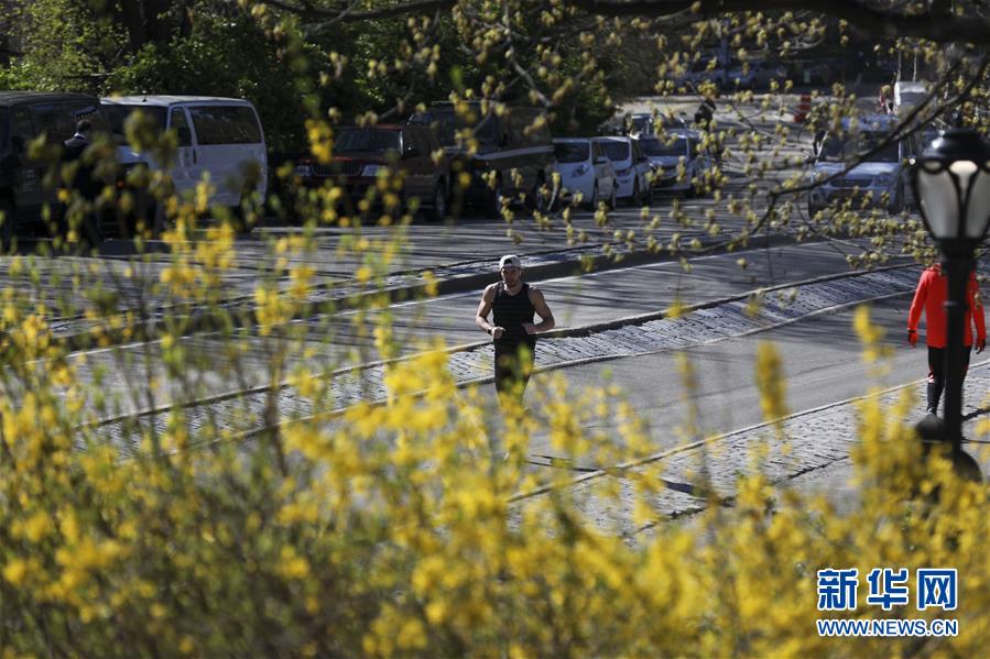 4月16日,一名男子在美國(guó)紐約中央公園跑步。 新華社記者 王迎 攝