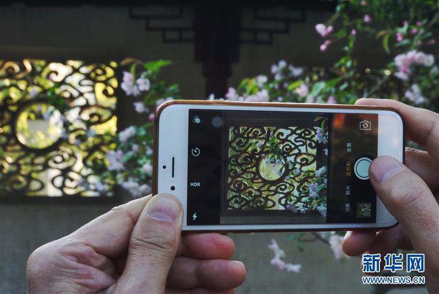 2019年4月1日,一名游客在中國(guó)蘇州耦園內(nèi)拍照。2000年,耦園和滄浪亭、藝圃、獅子林、退思園作為蘇州古典園林的擴(kuò)展項(xiàng)目被列入聯(lián)合國(guó)教科文組織世界文化遺產(chǎn)名單。 新華社記者杜涓涓攝