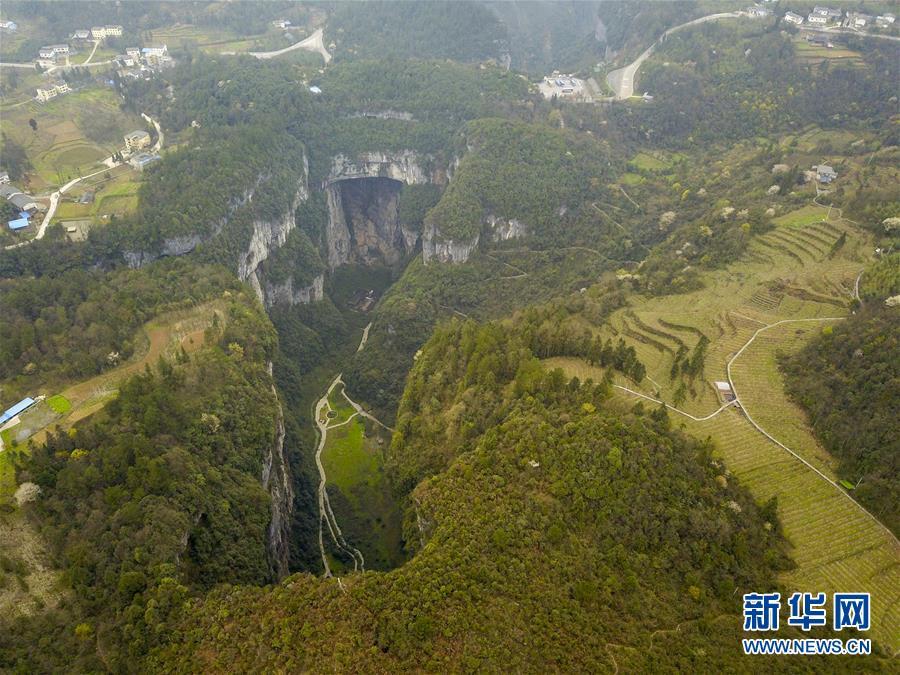 這是3月27日拍攝的天生三橋景區(qū)(無人機(jī)拍攝)。 隨著天氣轉(zhuǎn)暖,重慶武隆天生三橋景區(qū)風(fēng)景如畫,氣勢磅礴的天生石橋和綠意盎然的山林相映成趣,吸引眾多游客前來踏春賞景。 新華社記者劉潺攝