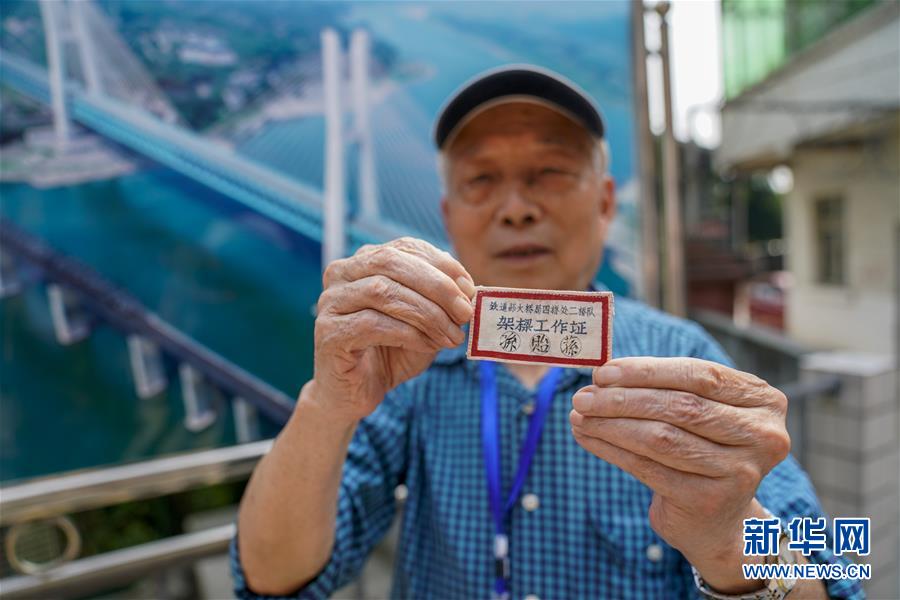 重慶白沙沱長江大橋的建設(shè)者孫貽蓀老人展示他保存的架梁工作證(4月23日攝)。 4月23日下午5點(diǎn)40分,隨著重慶白沙沱長江大橋通行的最后一列客運(yùn)列車順利通過,這座“服役”了59年的重慶首座長江大橋進(jìn)入“退役”倒計(jì)時(shí)。4月24日后,所有列車將改線經(jīng)距白沙沱長江大橋約100米的新白沙沱長江特大橋通行,新橋“接力”老橋,運(yùn)輸能力將得到大幅提升。 白沙沱長江大橋于1958年開工,1960年通過首趟列車,是繼武漢長江大橋之后的第二座長江大橋。 新華社記者 劉潺 攝