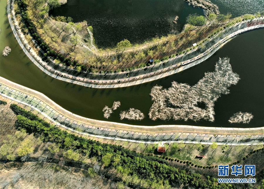 這是位于河南省平頂山市由采煤塌陷區(qū)修復(fù)改造的白鷺洲國家城市濕地公園一景(3月12日無人機拍攝)。 新華社記者 李安 攝