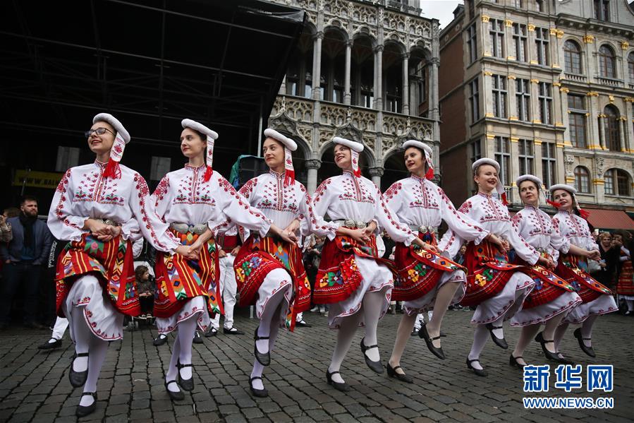 4月28日,在比利時布魯塞爾大廣場,演員表演保加利亞的民族舞蹈。 當日,來自歐洲多個國家的表演者在比利時布魯塞爾大廣場載歌載舞,慶祝為期五天的2019年巴爾干文化藝術(shù)節(jié)圓滿落幕。該文化藝術(shù)節(jié)旨在用音樂、舞蹈、文學、街頭藝術(shù)等方式向公眾展現(xiàn)東南歐巴爾干半島地區(qū)的民族文化風情。 新華社記者鄭煥松攝