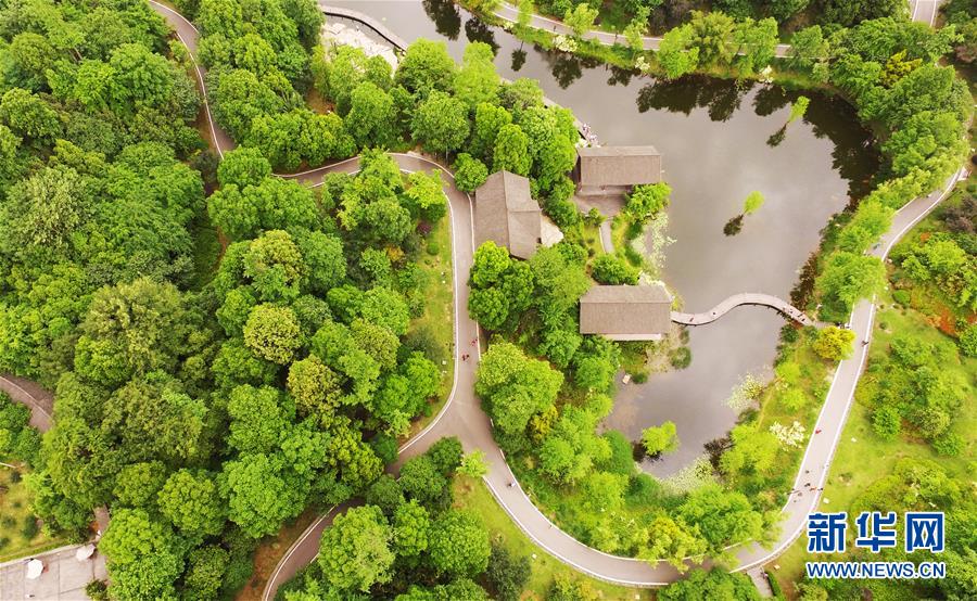 這是5月1日無人機拍攝的重慶璧山觀音塘濕地公園景象。新華社記者 王全超 攝