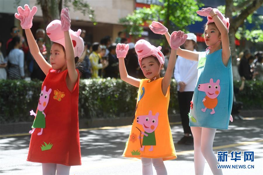 5月4日,扮演成“小豬佩奇”的演員在巡游隊(duì)伍中表演。當(dāng)日,第十五屆中國國際動(dòng)漫節(jié)彩車巡游活動(dòng)在浙江杭州南宋御街中北創(chuàng)意街區(qū)舉行。巡游表演隊(duì)伍約500米長(zhǎng),由4輛大型動(dòng)漫彩車、1輛小火車及400多名演員組成。新華社記者 黃宗治 攝