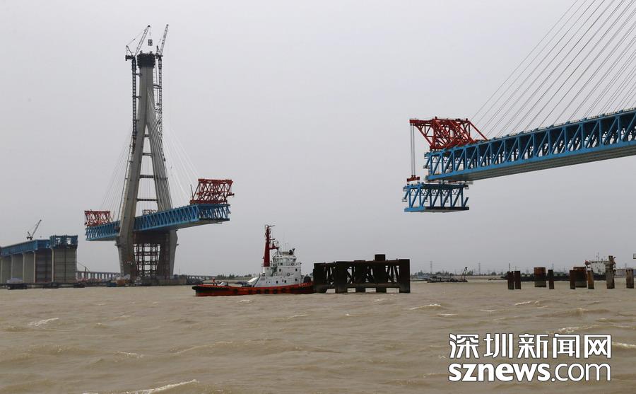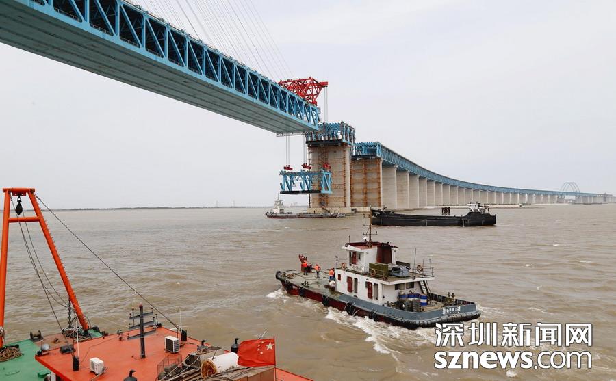 2019年5月6日,由中鐵大橋局承建的滬通長江大橋28號墩,完成了第13輪大節(jié)段鋼梁雙懸臂架設的吊裝作業(yè)。