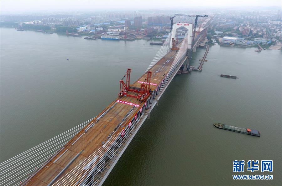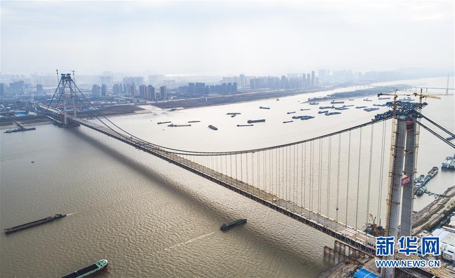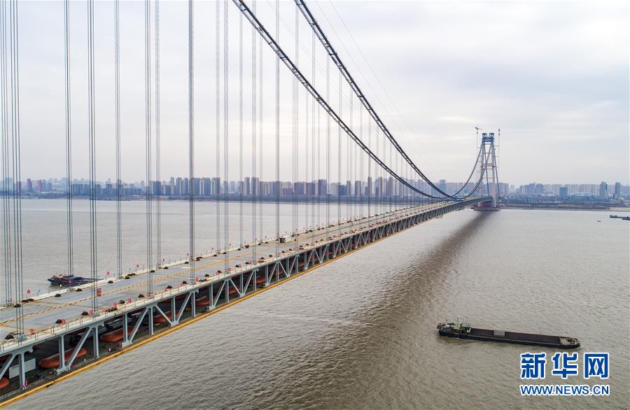 當日,隨著最后一節(jié)鋼梁吊裝到位,由中鐵大橋院設計、中鐵大橋局施工的武漢楊泗港長江大橋順利合龍,標志著這座世界最大跨度雙層公路懸索橋主體工程完工,進入橋面鋪裝階段。 武漢楊泗港長江大橋是武漢市內(nèi)建設的第十座長江大橋,也是長江上首座雙層公路大橋。 新華社記者 肖藝九 攝