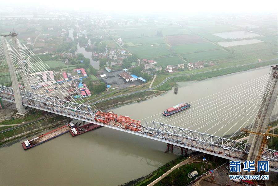 商合杭鐵路蕪湖長江公鐵大橋合龍現(xiàn)場(4月26日攝)。