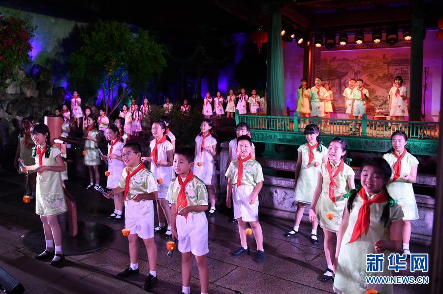 5月5日,小學(xué)生在福州三坊七巷的水榭戲臺表演。 福州三坊七巷為國內(nèi)現(xiàn)存規(guī)模較大、保護(hù)較為完整的歷史文化名街區(qū),是中國十大歷史文化名街之一。位于三坊七巷內(nèi)的水榭戲臺經(jīng)常舉辦傳統(tǒng)文化演出吸引游客慕名前來觀賞。 新華社記者 林善傳 攝