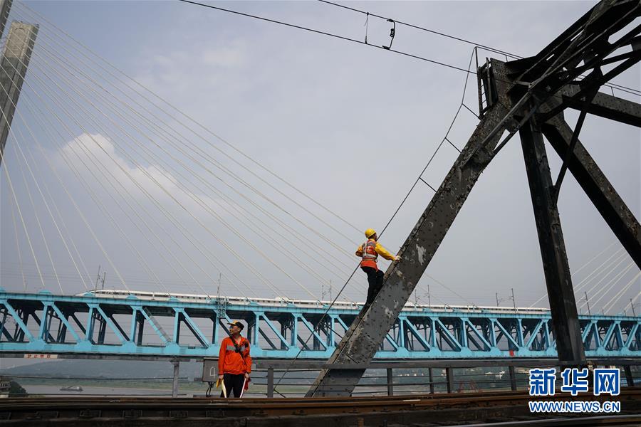 中國鐵路成都局有限公司重慶工務(wù)段的巡檢班組在白沙沱長江大橋上等待機車通過后繼續(xù)作業(yè)(4月23日攝)。 4月23日下午5點40分,隨著重慶白沙沱長江大橋通行的最后一列客運列車順利通過,這座“服役”了59年的重慶首座長江大橋進(jìn)入“退役”倒計時。4月24日后,所有列車將改線經(jīng)距白沙沱長江大橋約100米的新白沙沱長江特大橋通行,新橋“接力”老橋,運輸能力將得到大幅提升。 白沙沱長江大橋于1958年開工,1960年通過首趟列車,是繼武漢長江大橋之后的第二座長江大橋。 新華社記者 劉潺 攝