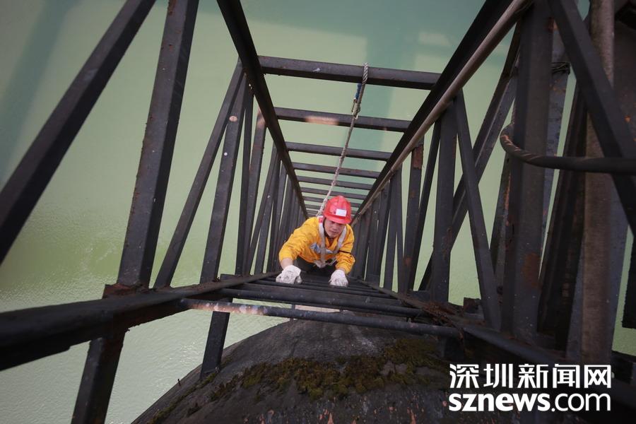 中國鐵路成都局有限公司重慶工務(wù)段53歲的橋隧工唐金華在白沙沱長江大橋的鋼架上檢查鋼梁的銹蝕情況(4月23日攝)。 4月23日下午5點40分,隨著重慶白沙沱長江大橋通行的最后一列客運列車順利通過,這座“服役”了59年的重慶首座長江大橋進(jìn)入“退役”倒計時。4月24日后,所有列車將改線經(jīng)距白沙沱長江大橋約100米的新白沙沱長江特大橋通行,新橋“接力”老橋,運輸能力將得到大幅提升。 白沙沱長江大橋于1958年開工,1960年通過首趟列車,是繼武漢長江大橋之后的第二座長江大橋。 新華社記者 劉潺 攝