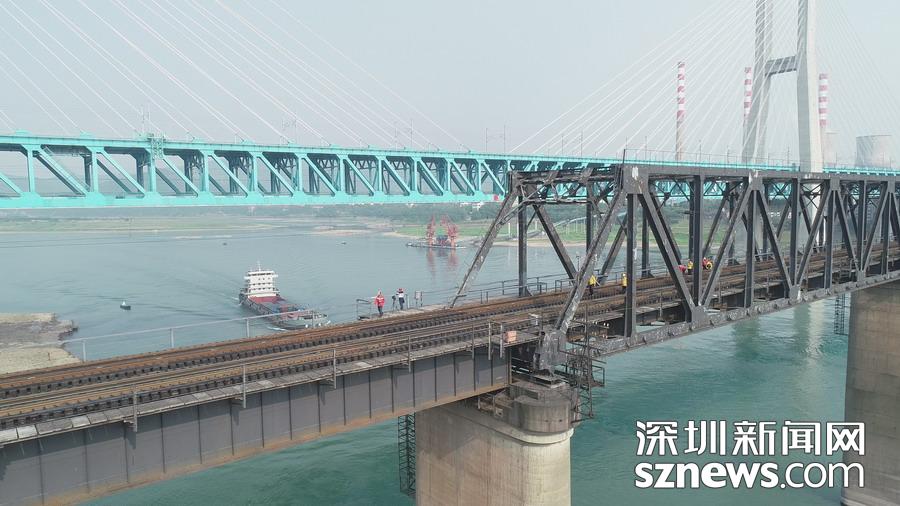 中國鐵路成都局有限公司重慶工務(wù)段的巡檢班組在白沙沱長江大橋上進(jìn)行巡檢作業(yè)(4月23日攝)。 4月23日下午5點40分,隨著重慶白沙沱長江大橋通行的最后一列客運列車順利通過,這座“服役”了59年的重慶首座長江大橋進(jìn)入“退役”倒計時。4月24日后,所有列車將改線經(jīng)距白沙沱長江大橋約100米的新白沙沱長江特大橋通行,新橋“接力”老橋,運輸能力將得到大幅提升。 白沙沱長江大橋于1958年開工,1960年通過首趟列車,是繼武漢長江大橋之后的第二座長江大橋。 新華社記者 劉潺 攝