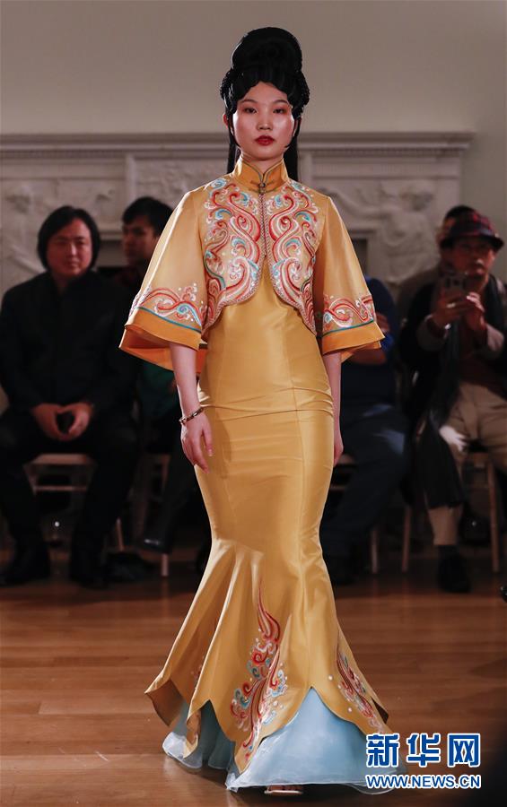 5月8日,一名模特在英國(guó)倫敦走秀。 由浙江省文化和旅游廳舉辦的浙江傳統(tǒng)工藝創(chuàng)新展8日在倫敦開幕。為期4天的展覽是第五屆倫敦手工藝周的重要活動(dòng)之一。 新華社記者 韓巖 攝