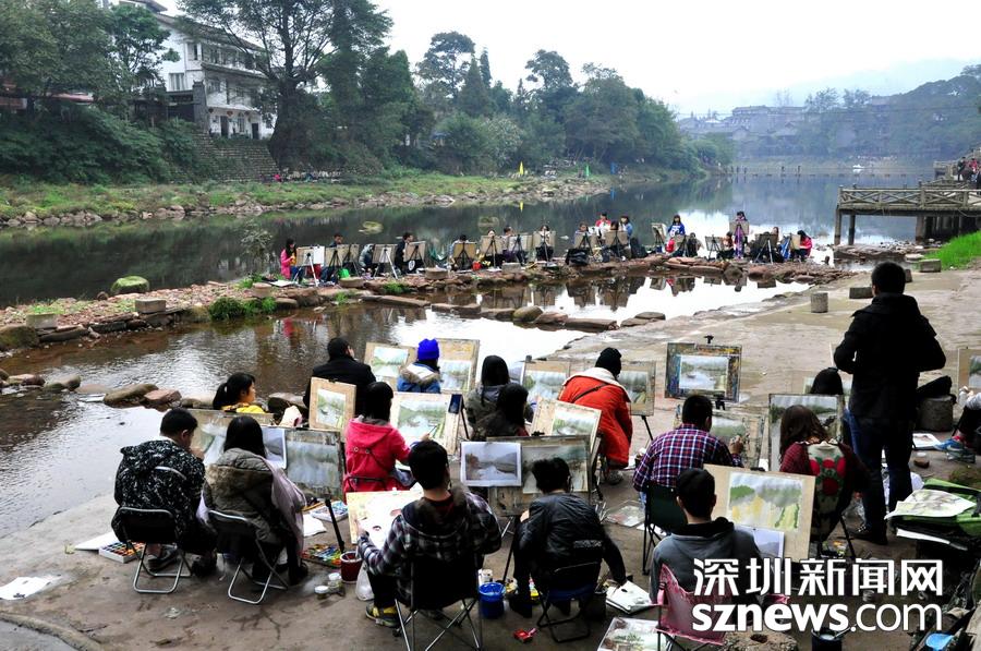 古鎮(zhèn)吸引很多寫(xiě)生的學(xué)生
