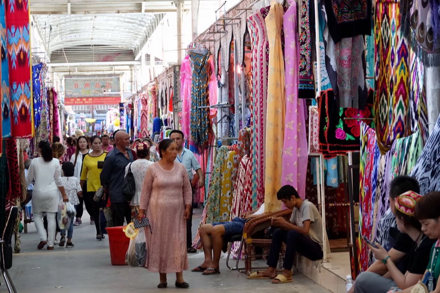 喀什中西亞國(guó)際大巴扎位于喀什市東北角的吐曼河?xùn)|岸,又稱東門大巴扎。李仁奇 攝