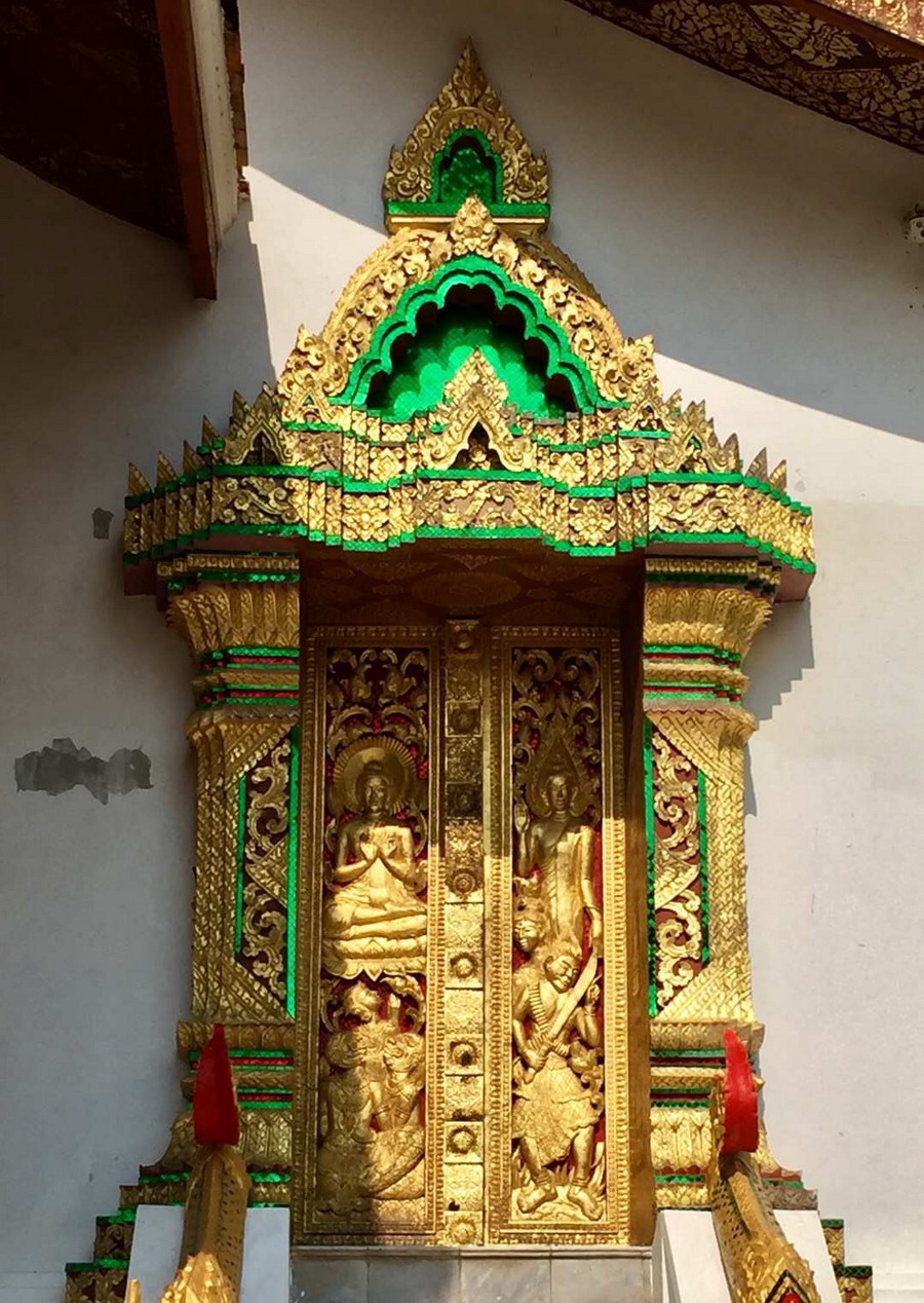 大殿后墻上用琉璃鑲嵌的生命之樹(shù)圖案和幾個(gè)佛教故事十分精美。