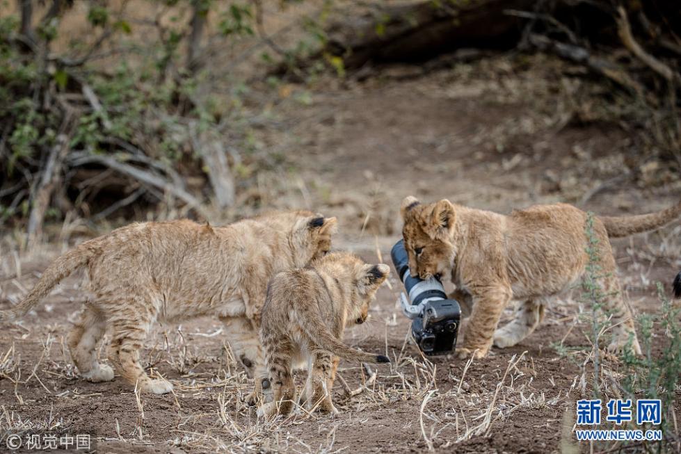 近日,非洲博茨瓦納馬沙圖野生動(dòng)物保護(hù)區(qū)內(nèi)一頭獅子叼起攝影師掉落在地上的相機(jī),之后還將相機(jī)交給小獅子們玩耍,看起來(lái)十分好奇,而攝影師非常無(wú)奈?,F(xiàn)年57歲的叢林探險(xiǎn)家Barbara Jensen Vorster在一輛越野車上為馬沙圖野生動(dòng)物保護(hù)區(qū)的獅群拍照時(shí),相機(jī)不小心掉到了地上。砰的一聲響驚動(dòng)了母獅子,它向攝影師方向移動(dòng),迫使探險(xiǎn)隊(duì)撤退。(圖片來(lái)源:視覺中國(guó))
