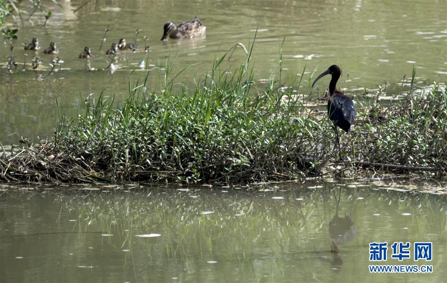 5月21日,一群野鴨從棲息在漢江濕地公園里的一只彩鹮身邊游過。 近日,國(guó)家二級(jí)保護(hù)動(dòng)物彩鹮現(xiàn)身陜西省漢中市漢江濕地公園濂水河與漢江交匯處。 據(jù)陜西師范大學(xué)生命科學(xué)院教授于曉平介紹,彩鹮在世界上的分布比朱鹮還要少,這幾年在云南發(fā)現(xiàn)得多一些,這3只彩鹮現(xiàn)身漢江濂水河畔,是陜西首次發(fā)現(xiàn)彩鹮蹤跡。 據(jù)了解,彩鹮是國(guó)家二級(jí)保護(hù)動(dòng)物,屬鵜形目鹮科,體羽大部為青銅栗色,是珍稀鳥類朱鹮的“近親”,體型比朱鹮略小。 新華社記者陶明攝