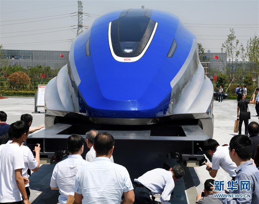 5月23日,人們在時速600公里高速磁浮試驗樣車下線儀式上參觀。新華社記者李紫恒 攝