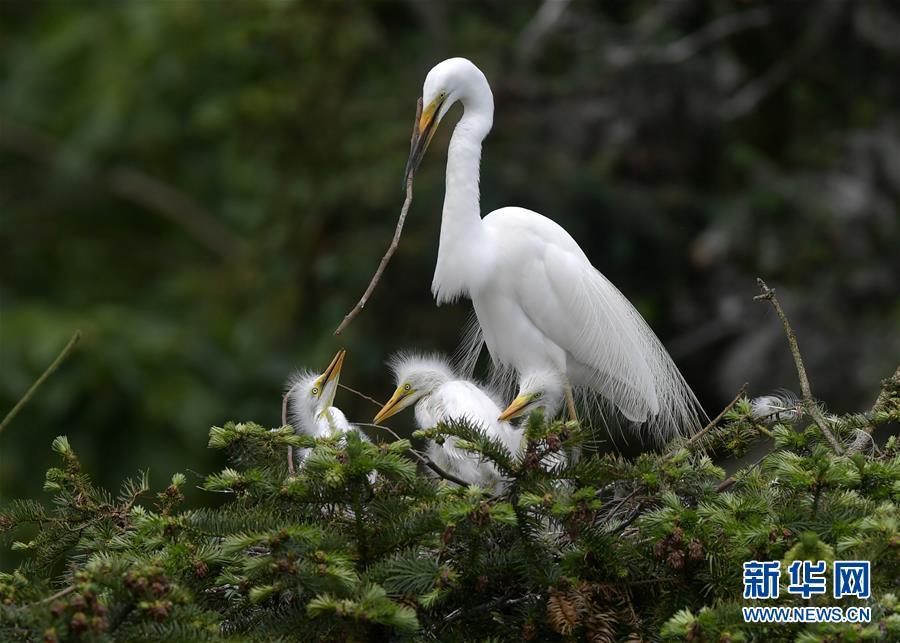 在江西省南昌市新建區(qū)象山森林公園內(nèi),白鷺和自己的雛鳥(niǎo)在一起(5月21日攝)。 近日,在江西省南昌市新建區(qū)象山森林公園內(nèi),已安家筑巢的大批鷺鳥(niǎo)陸續(xù)孵化出了后代。象山森林公園有著“鷺鳥(niǎo)王國(guó)”的美譽(yù),生態(tài)環(huán)境良好,每年都會(huì)吸引白鷺、蒼鷺、夜鷺等鷺鳥(niǎo)飛抵棲息和繁衍后代。 新華社記者 彭昭之 攝