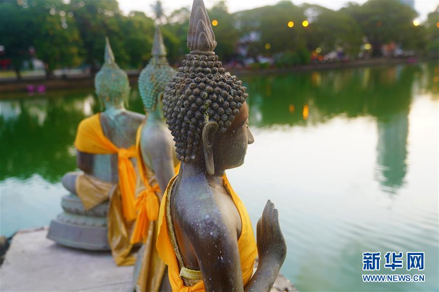 這是夕陽下的斯里蘭卡科倫坡水中廟佛像(5月27日攝)。 在科倫坡貝拉湖上有一座木造樓閣——水中廟。木造建筑上面覆蓋著藍瓦,外圍環(huán)繞著線條優(yōu)美的佛像。樓閣外高臺上供奉的佛像,與不遠處的高層建筑相互映照。祥和寧靜的水中廟已成為人們修心、祈福的重要場所。 新華社記者唐璐攝