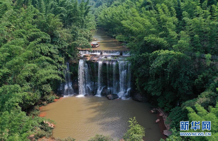 貴州赤水四洞溝景區(qū)一景(6月4日攝)。 貴州遵義赤水市有眾多大大小小的瀑布群,素有“千瀑之市”的美譽(yù),飛瀑美景吸引八方游客前來(lái)賞景度假。 新華社記者鄭雅寧攝