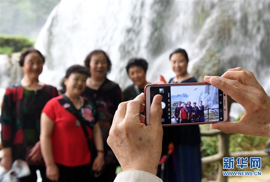 6月4日,游人在貴州赤水四洞溝景區(qū)游覽。 貴州遵義赤水市有眾多大大小小的瀑布群,素有“千瀑之市”的美譽(yù),飛瀑美景吸引八方游客前來(lái)賞景度假。 新華社記者鄭雅寧攝