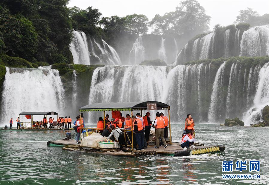 4月17日,游客在大新縣德天瀑布景區(qū)游覽。