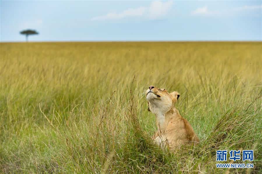 6月17日,在肯尼亞馬賽馬拉國(guó)家保護(hù)區(qū),一頭獅子在草叢中。 新華社記者 李琰 攝