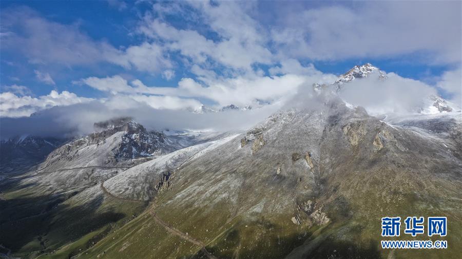 這是雪后初霽的拉依布拉克牧場景觀(6月22日無人機拍攝)。