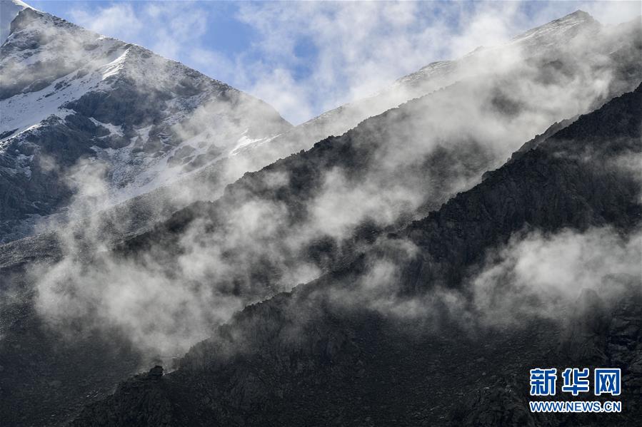 拉依布拉克牧場(chǎng)山間云霧繚繞(6月22日攝)。新華社記者 胡虎虎 攝