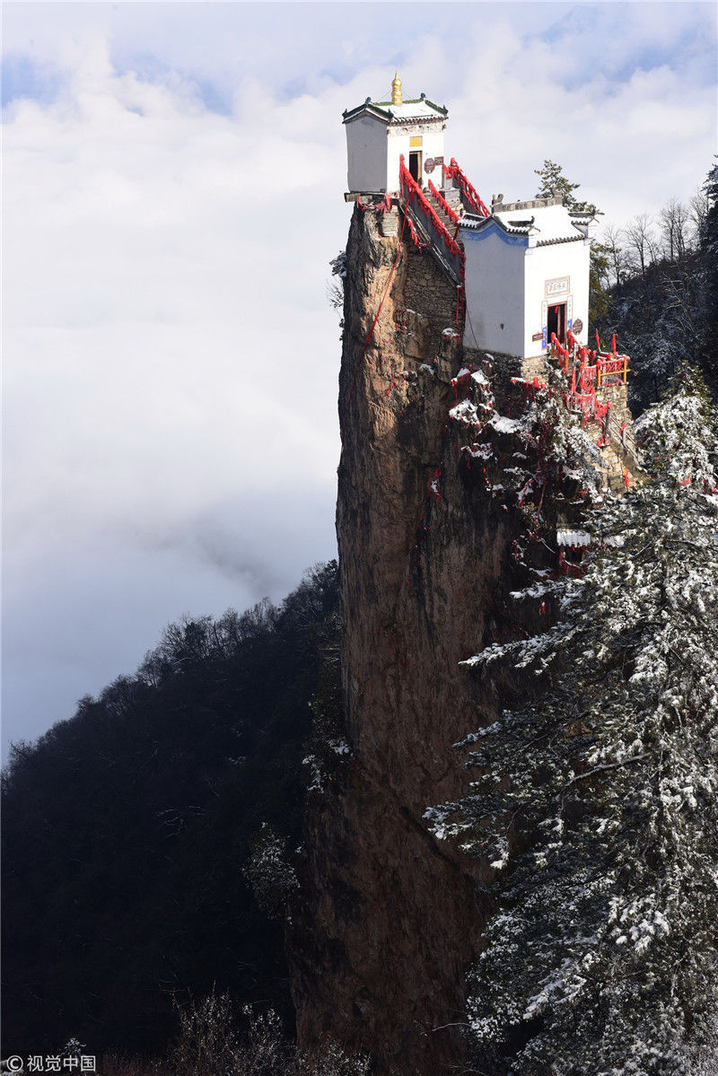 2019年3月3日,陜西商洛,位于鎮(zhèn)安縣的塔云山景區(qū)云海翻騰,宛如仙境。