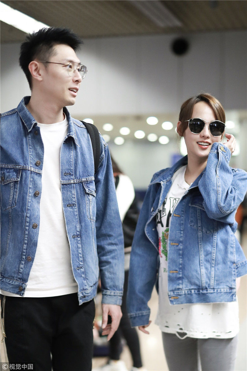 2019年4月1日,張嘉倪與老公買超現(xiàn)身機(jī)場,從廣州飛往北京。兩人同穿情侶牛仔裝,一路對視熱聊感情超甜,張嘉倪對鏡頭熱情揮手舉公仔,親和力MAX。匿名/視覺中國編輯/陳進(jìn)