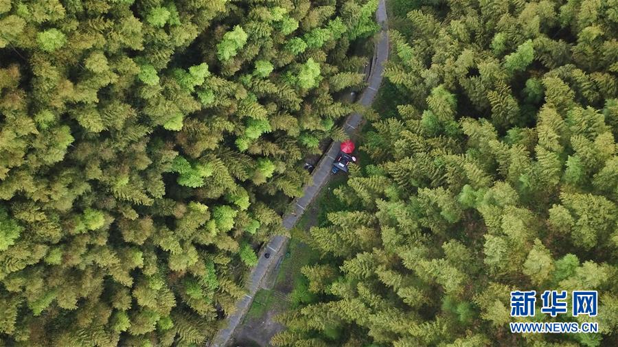 8月3日,游客行走在木坑竹海景區(qū)的小路上(無人機(jī)拍攝)。夏日,安徽省黃山市黟縣的木坑竹海景區(qū)風(fēng)景優(yōu)美,吸引不少游客前來休閑避暑。新華社記者張端攝