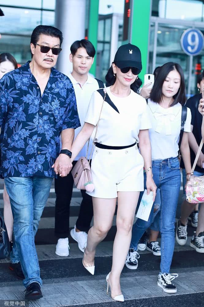 2019年8月10日,北京,趙雅芝與老公黃錦燊現(xiàn)身機(jī)場。