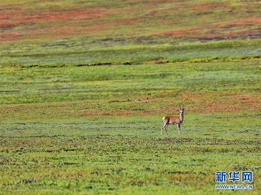 一只藏原羚在草原上駐足(8月14日攝)。 8月12日至14日,來(lái)自全國(guó)各地的31名自然愛好者聚集在海拔4200米的青海省玉樹藏族自治州稱多縣嘉塘草原,參加“2019嘉塘自然觀察節(jié)”。自然愛好者用獨(dú)特視角記錄珍稀野生動(dòng)植物,觀察三江源生態(tài)。 新華社記者 張大川 攝