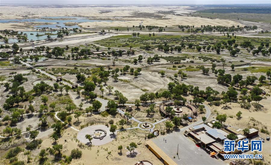 從空中俯瞰位于尉犁縣的羅布人村寨(6月19日無人機(jī)拍攝)。新華社記者 趙戈 攝