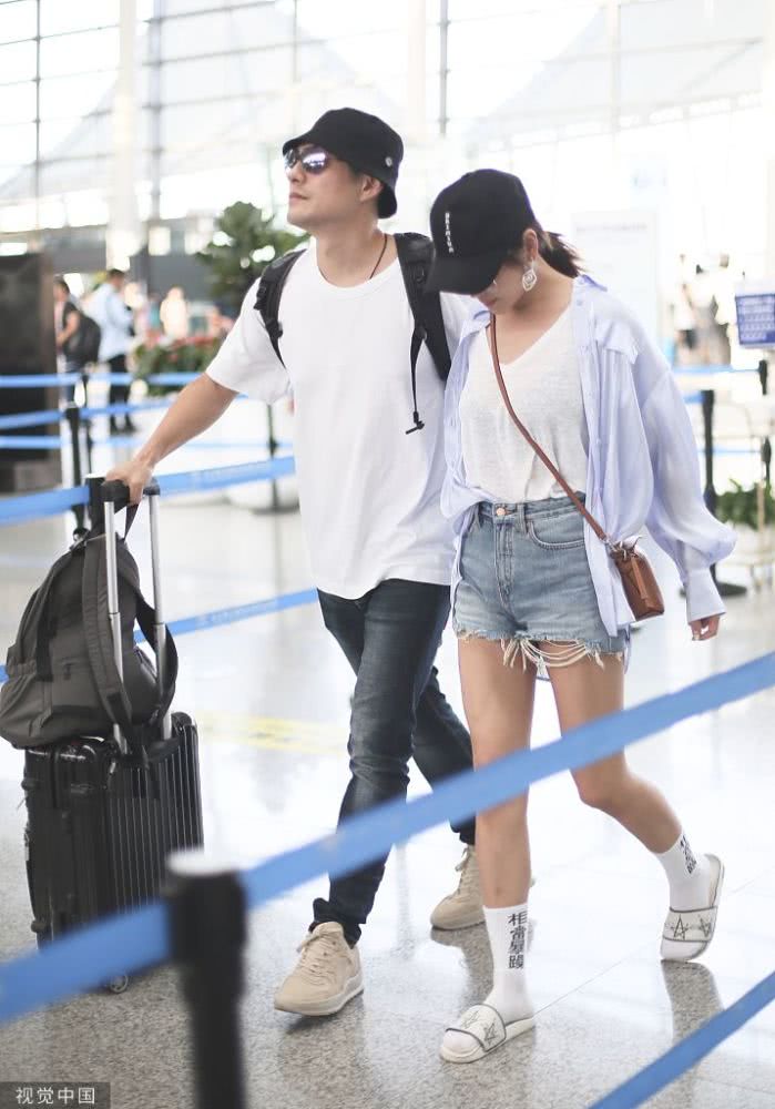 2019年8月19日,長沙,嚴(yán)屹寬、杜若溪夫婦現(xiàn)身機(jī)場。辦完登機(jī)手續(xù)后嚴(yán)屹寬主動(dòng)拎過所有行李,妥妥的模范老公,而美美的杜若溪素顏亮相,大玩下衣失蹤秀美腿,襪子上的“相當(dāng)暴躁”有點(diǎn)意思!
