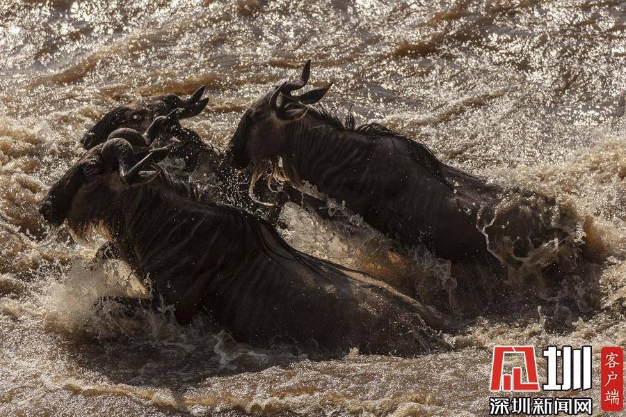 非洲角馬大軍集體遷徙,勇渡致命河流上演“生死時速”。