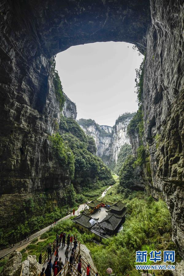 游客在天生三橋景區(qū)內(nèi)的天龍橋景點(diǎn)游覽(3月27日攝)。 新華社記者劉潺攝