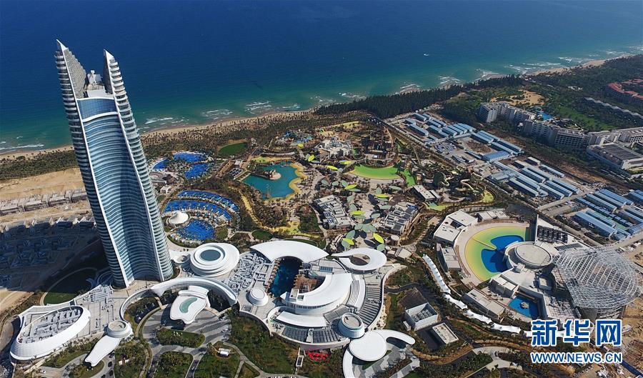 這是海南三亞亞特蘭蒂斯酒店全景(2018年2月17日無人機拍攝)。新華社記者郭程攝