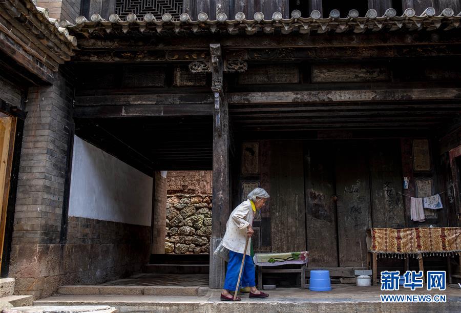 85歲的村民周秀芹走進位于石屏縣異龍鎮(zhèn)符家營村140號的家中(8月8日攝)。新華社記者 江文耀 攝