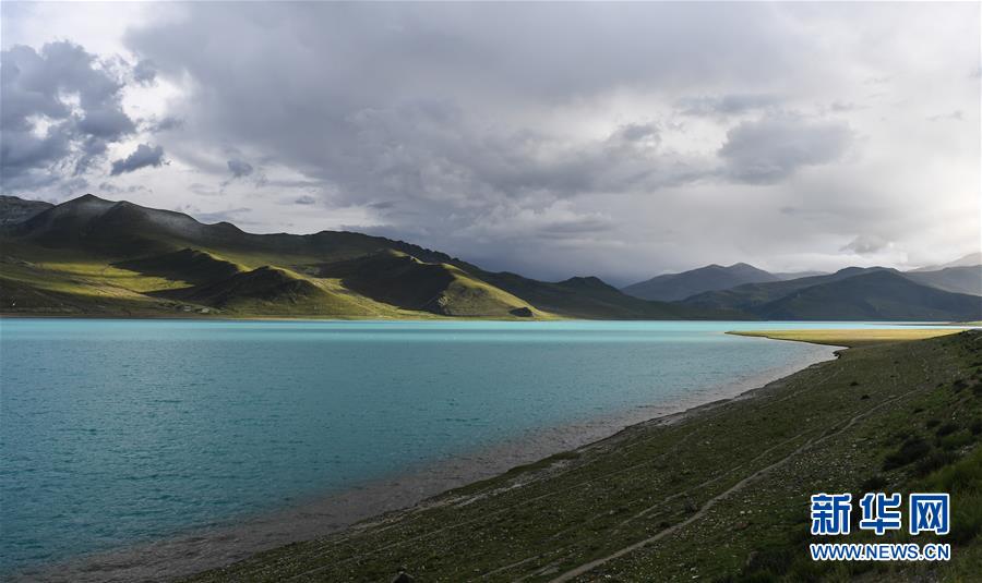 8月31日無人機拍攝的羊卓雍錯風光。 新華社記者 晉美多吉 攝