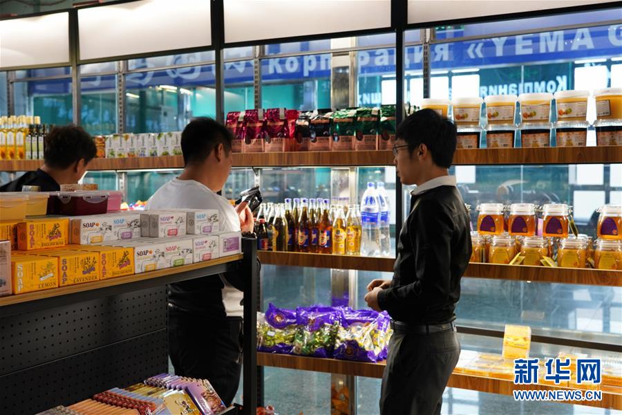 9月4日,在新疆塔城地區(qū)巴克圖口岸,顧客在絲路文化商品城內(nèi)選購商品。 新華社記者鄒予攝