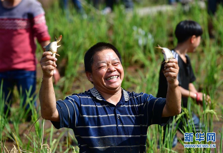 10月28日,在廣西融水苗族自治縣拱洞鄉(xiāng)龍令村,村民參加抓魚比賽。當日,廣西融水苗族自治縣拱洞鄉(xiāng)舉辦香糯泉水螺美食文化節(jié),苗族、侗族、瑤族、壯族等各民族同胞歡聚一堂,通過摸螺抓魚比賽、田螺姑娘評選、跳蘆笙踩堂舞、品香螺百家宴等豐富多彩的活動,慶祝金秋豐收。近年來,拱洞鄉(xiāng)依托生態(tài)資源優(yōu)勢,大力發(fā)展香糯種植、田螺養(yǎng)殖等特色產(chǎn)業(yè)。全鄉(xiāng)的田螺養(yǎng)殖面積4000多畝,成立4家田螺產(chǎn)業(yè)專業(yè)合作社,帶動2000多農(nóng)戶參與到田螺養(yǎng)殖。目前,田螺養(yǎng)殖已成為當?shù)刎毨裘撠氈赂坏闹匾a(chǎn)業(yè)。新華社記者 黃孝邦 攝