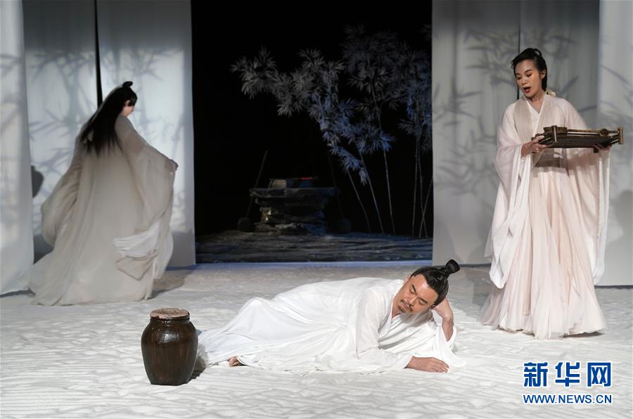 9月16日,演員在話(huà)劇《廣陵絕》中表演。 當(dāng)日,話(huà)劇《廣陵絕》在北京人藝實(shí)驗(yàn)劇場(chǎng)上演。 新華社記者 金良快 攝